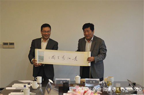 YRIC Executive President Mr. Liu Meng Gave Yangtze River Miles Chart to Chairman of Kangde Mr. Zhong Yu as a Gift