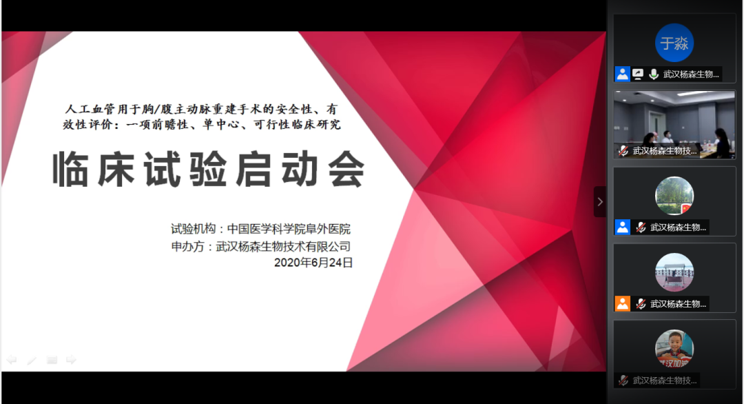 长江国际商会理事单位武汉杨森生物技术有限公司申办的“人工血管用于胸/腹主动脉重建手术的安全性、有效性评价:一项前瞻性、单中心、可行性临床研究”,在中国医学科学院阜外医院召开临床试验启动会,标志着一种国产原创三层结构设计人工血管(商标:PuVaso)正式进入临床验证阶段。