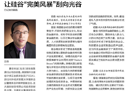 丘创:美国硅谷成功的最关键因素在于:不怕失败的硅谷文化、发达的金融市场、有利于科技创新的整套金融机制,以及汇集全球金融资源、人才资源和创新资源等为维持美国科技创新领先地位服务。