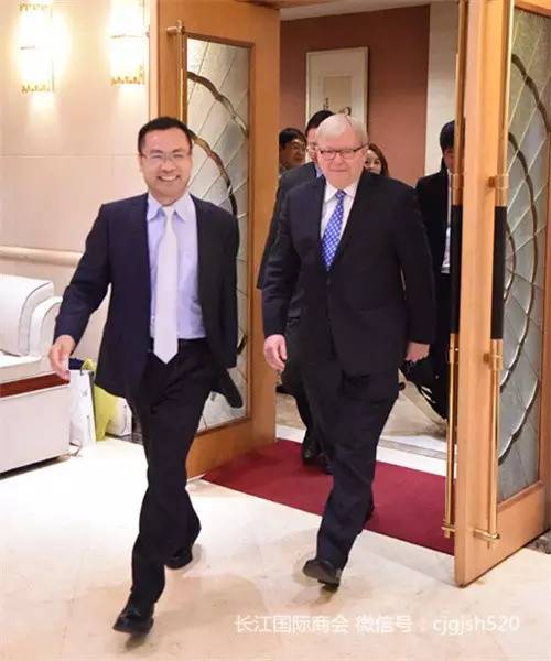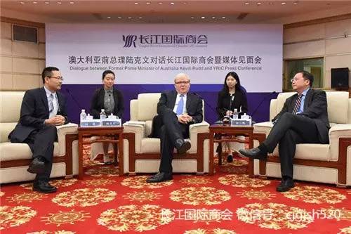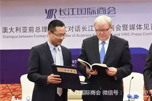 陆克文在武汉东湖宾馆7月4日晚召开的“澳大利亚前总理陆克文对话长江国际商会”上表示,随着中澳自贸协定和亚投行协定的签署,特别是长江经济带和一带一路战略的实施,长江国际商会迎来全球发展的新机遇,他表示将全力支持长江国际商会全球化发展,帮助其打造全球商业领袖平台。