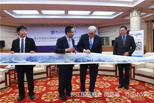 对话会开始之前,刘萌执行会长代表长江国际商会,向陆克文赠送了两件礼物:长卷《长江万里图》和英文版线装书《论语》。刘萌在现场说,“《长江万里图》画卷把整个长江全程体现了出来,而长江国际商会因为长江聚集了全球一万多名商业领袖,希望长江能做纽带,把您和长江国际商会紧紧地联结在一起。《论语》是2500年前中国最著名思想家孔子作品,古人云‘半部论语治天下’,我们送你一部《论语》,且是英文文本,最后借用《论语》开篇的一句话,有朋自远方来,不亦说乎,表达对陆克文莅临长江国际商会的欢迎。”
