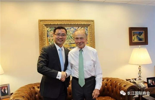 图说:长江国际商会名誉会长格林伯格会见湖北省副省长曹广晶