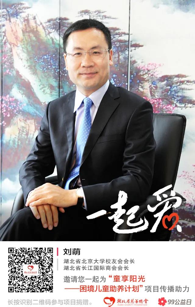 受湖北省慈善总会邀请,自2020年9月1日至12月31日,湖北省长江国际商会会长刘萌担任2020年腾讯“99公益日”活动“童享阳光”困境儿童助养计划项目代言人,其肖像作为该慈善项目的宣传推广图片,在互联网进行传播,以号召和带动更多爱心人士,关爱关心困境儿童,为公益助力。
