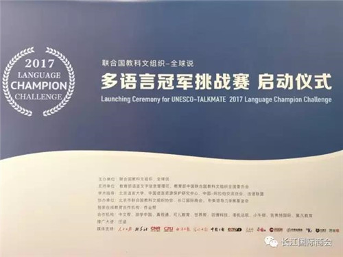 2017年7月17日,由长江国际商会等单位协办、联合国教科文组织主办的“2017国际多语言冠军挑战赛”启动仪式在北京语言大学礼堂隆重举行。