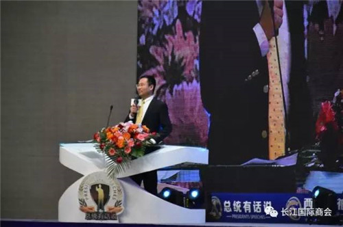 图说:长江国际商会执行会长刘萌在峰会上发言