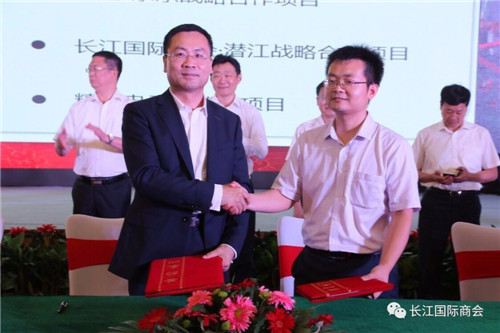 图说:长江国际商会全球执行会长与潜江市招商局局长赵曜进行签约