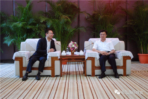 图说: 长江国际商会执行会长刘萌与潜江市市委书记黄剑雄