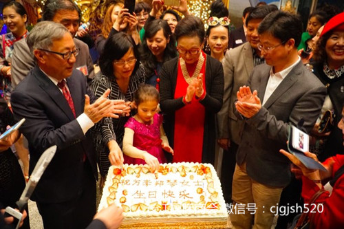 图说:长江国际商会名誉会长方李邦琴庆祝生日
