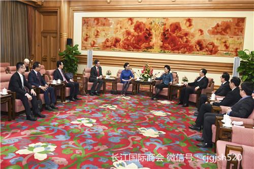 图说:国务院副总理刘延东和长江国际商会名誉会长方李邦琴会谈