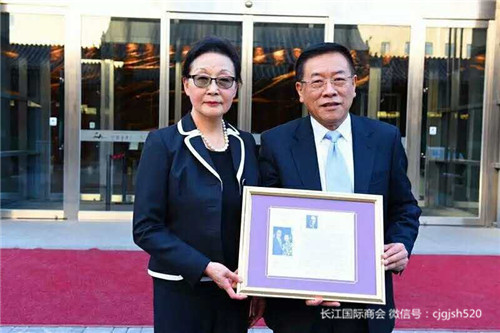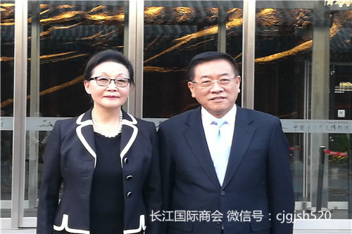 图说:长江国际商会名誉会长方李邦琴和中国侨联主席林军合影