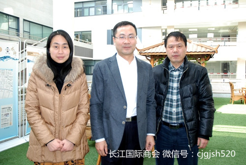 图说:长江国际商会执行会长刘萌(中)和特别关注多语种出版中心总监马亚伦(右)和执行主编宁芳(左)