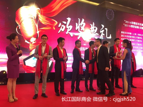 图说:长江国际商会执行会长刘萌为获奖者颁奖