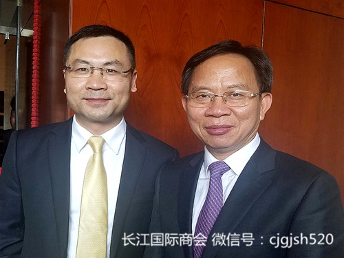 图说:国家统计局原局长邱晓华与长江国际商会执行会长刘萌