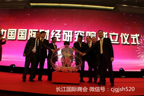 图说:长江国际商会执行会长刘萌启动中国国际财经研究院成立水晶球