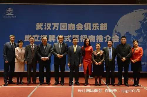 位于武汉沿江大道建于1905年的美国领事馆这个百年建筑又将迎来新主人,复兴大武汉又有了创新的平台,2016年12月12日,由长江国际商会、武汉外商投资服务中心和武汉外商投资企业协会等共同发起的武汉万国商会俱乐部揭牌成立,长江国际商会执行会长刘萌当选为理事长。霸王国际集团、孔裔公学、北京亮相文化和盛林金控集团等六家企业签约落户武汉,武汉市原市委常委冯记春、武汉市人民政府副市长邵为民等中外嘉宾100余人出席了活动。