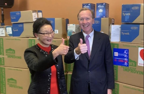 基金会创始人尼尔•布什(Neil Bush)代表基金会欢迎方李邦琴的加入,并表示:“我们今天不仅是象征性地打包即将送去中国的物资,给那些在中国一线奋战的人们。”