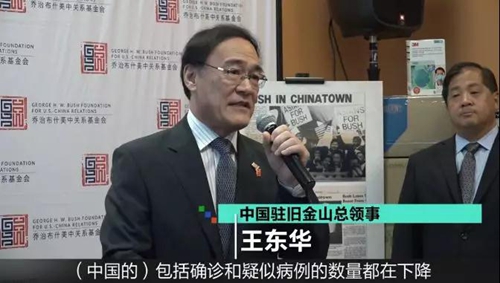 中国驻旧金山总领事王东华表示,中国疫情已逐渐得到控制,中国有信心将最终战胜病毒:“中国包括确诊和疑似病例的数量都在下降,而治愈的病例却在上升,这是非常鼓舞人心的。”