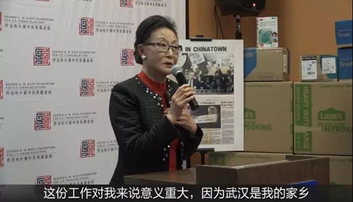 方李邦琴说,在新冠疫情爆发后,美中抗击新冠病毒行动网络(CAN)应声成立:“我非常荣幸成为CAN的主席,去协调所有对抗疫情的工作,这份工作对我来说意义重大,因为武汉是我的家乡,我想借这次机会,向所有没有在武汉出生成长、甚至都没有去过武汉的人,但是献出了爱心和同情的人们说声感谢!”
