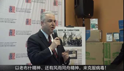 乔治•布什美中关系基金会主席David Firestein用中文总结了美中抗击新冠病毒行动网络的核心精神:“以老布什精神、还有风雨同舟精神,来克服病毒!”