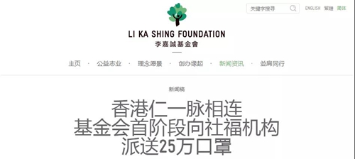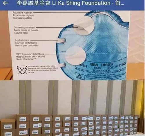 图说:长江国际商会名誉会长李嘉诚为前线医护人员购买的口罩