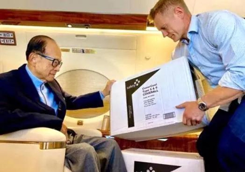 图说:长江国际商会名誉会长李嘉诚亲自护送医用物资