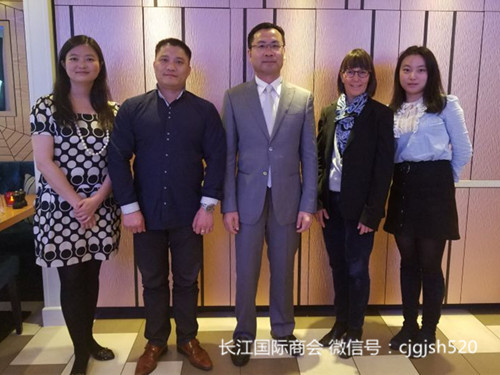 图说:英国筷子俱乐部联合首席执行官邓丽莎Theresa Booth(右二)与长江国际商会全球执行会长刘萌一行