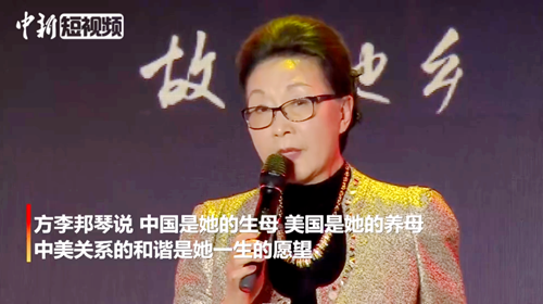 在颁奖典礼上,已经84岁高龄的方李邦琴说,中国是她的生母,美国是她的养母,愿两国人民友谊长存,她要为两国关系健康发展进一步贡献自己的力量。