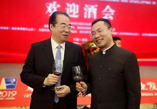 图说:中央统战部副部长、国务院侨务办公室主任许又声(左)、长江国际商会会长刘萌(右)