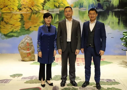 图说:王雅玉秘书长(左)、刘萌会长(中)、李峰总经理(右)燕园合影