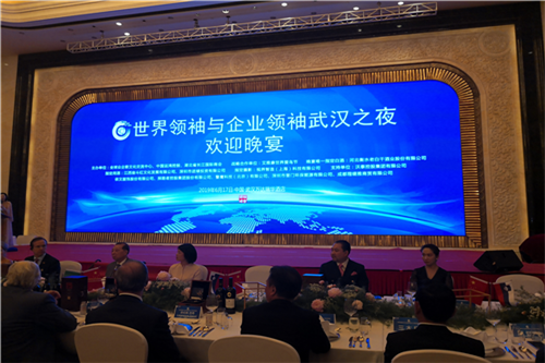 2019年6月17日,在武汉万达瑞华酒店举行的“世界领袖和企业领袖武汉之夜”欢迎晚宴上,来自九个国家的前元首共济一堂,与长江国际商会巅峰对话,放眼全球,纵论世界,论道武汉,共声反对贸易保护主义,共同盛赞武汉发展,成为江城的一次空前盛事,有力助推了武汉乃至湖北的对外开放。
