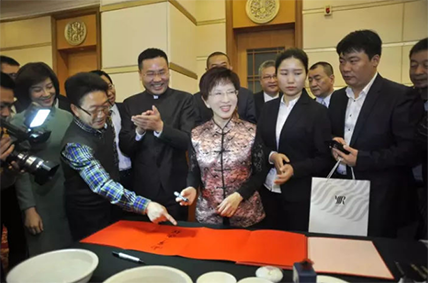 图说:中国国民党前主席洪秀柱为长江国际商会题词