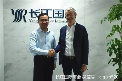 图说:长江国际商会执行会长刘萌(左)与法国驻武汉总领事Philippe Martinet马天宁(右)