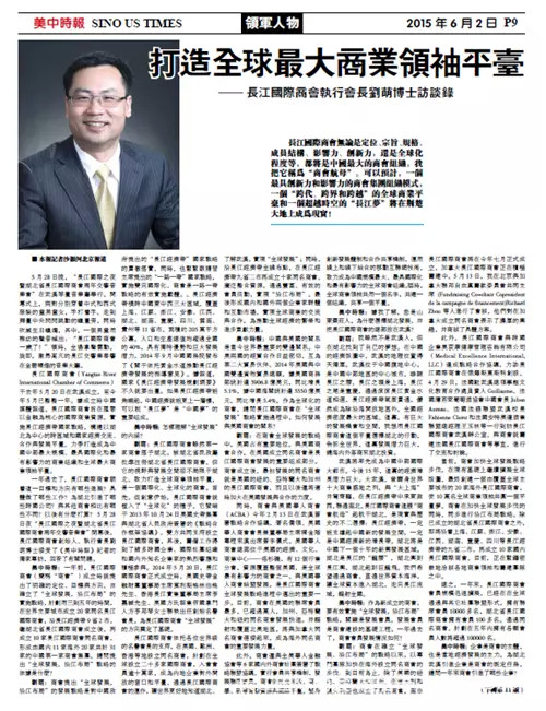 美中时报:据我了解,您是山东枣庄人,为什么选择湖北发展,并把长江国际商会的总部放在武汉?