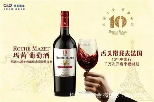 为庆祝玛茜葡萄酒进入中国十周年,长江国际商会会员单位建发酒业携手法国卡思黛乐兄弟简化股份公司(Castel)浓情推出玛茜十周年纪念酒,酒标上有醒目的10年标识,一只象征法国的高卢雄鸡,宽肩重瓶,单一赤霞珠酿造,由酿酒师甄选上品中之优品,最终呈现的纪念酒即将在十月限量发售。