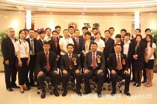 图说:长江国际商会理事单位华康财富员工合影