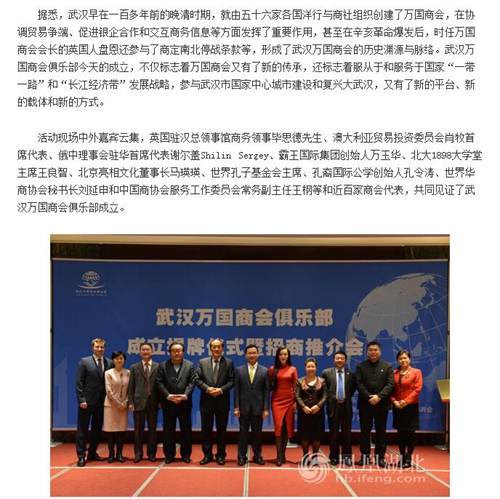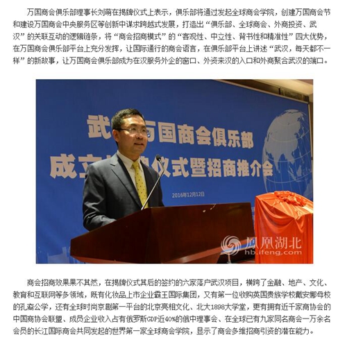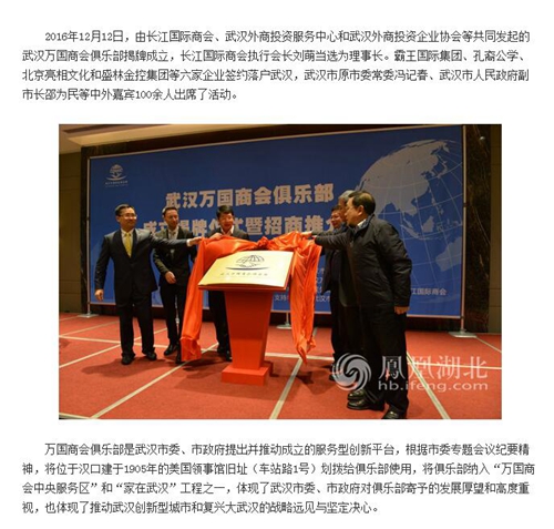 凤凰网:武汉万国商会俱乐部成立 聚集海内外优秀企业