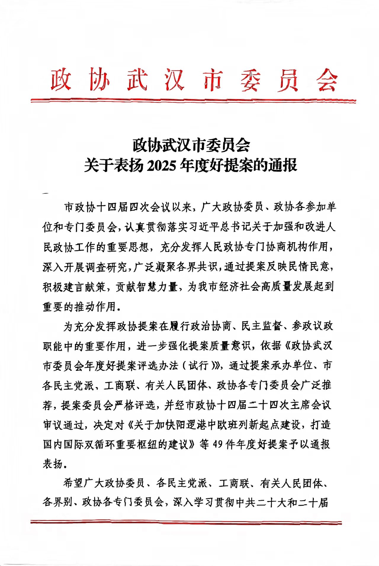 据悉,刘萌在本届武汉市政协履职中,已累计提交了22份政协提案,涉及政治、经济、社会和文化建设等领域,通过提案反映民情民意,积极建言献策,贡献智慧力量,有多篇提案得到市委市政府主要领导和相关部门负责人批示,为武汉市经济社会高质量发展起到重要的推动作用。
