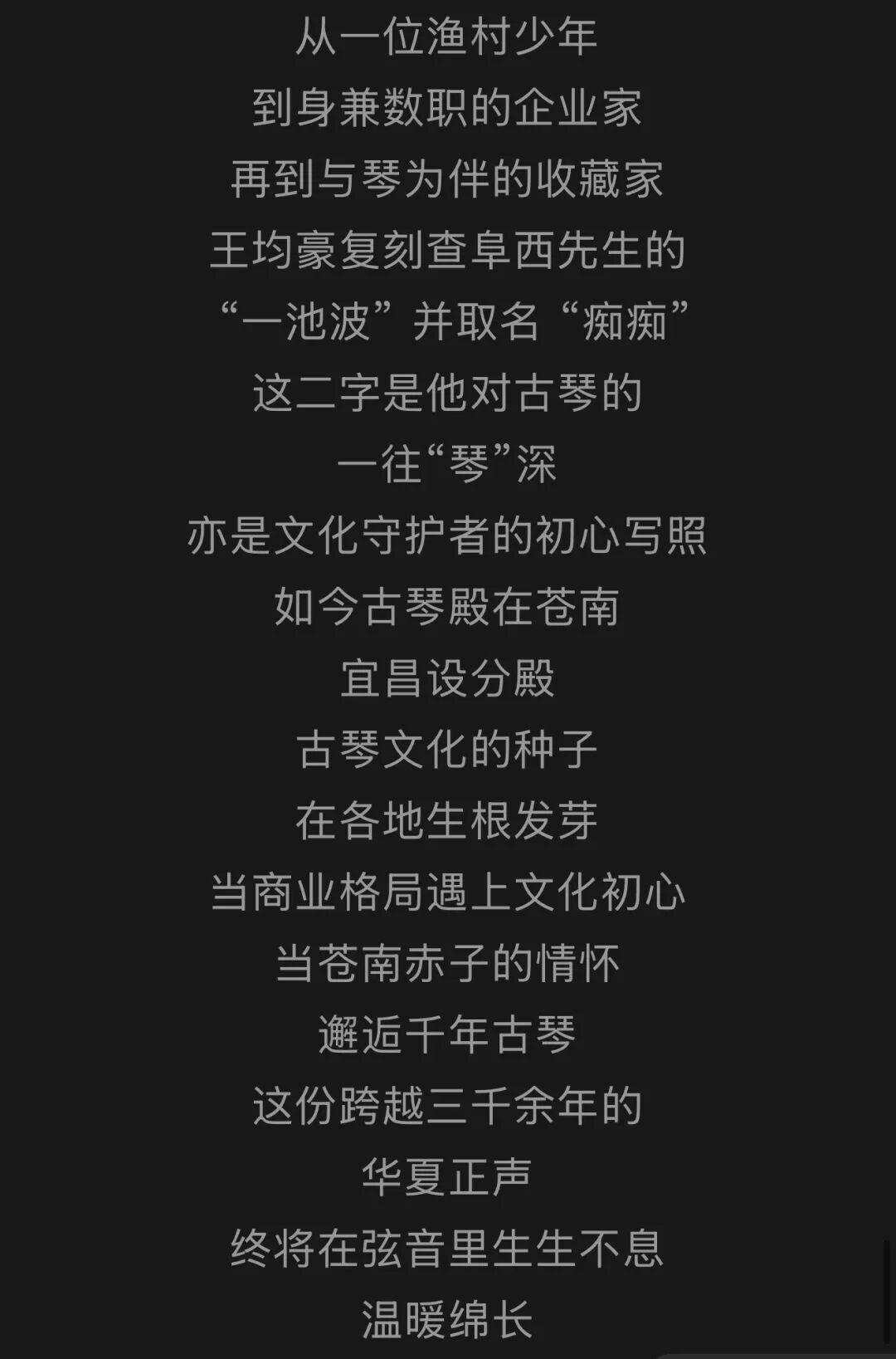 1972年生于温州苍南长江国际商会名誉会长均瑶集团总裁均瑶健康董事长含笑相迎暖意融融以馆藏古弦弹奏《梅花》清越琴音绕梁悠悠古意漫溢厅堂他谦称自己"乱弹琴"其实不然他弹起古琴也是一位好手琴声悠扬让人陶醉