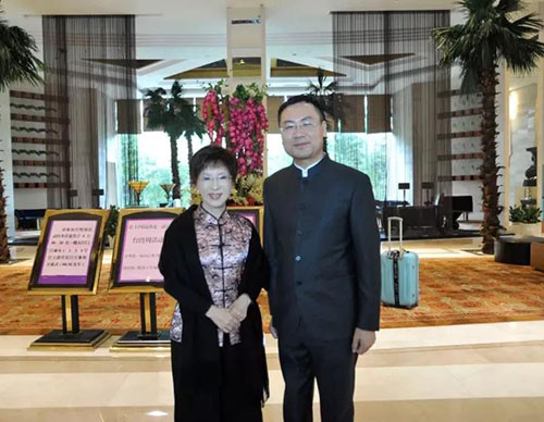 图说:长江国际商会全球执行会长刘萌与中国国民党前主席洪秀柱合影