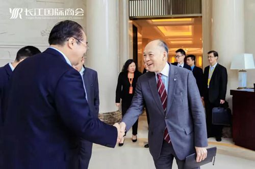 图说:中央统战部副部长、国务院侨务办公室主任许又声(左)、长江国际商会会长刘萌(右)