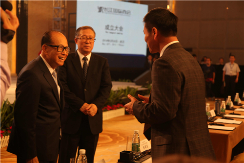 图说:长江国际商会名誉会长李嘉诚出席商会成立活动